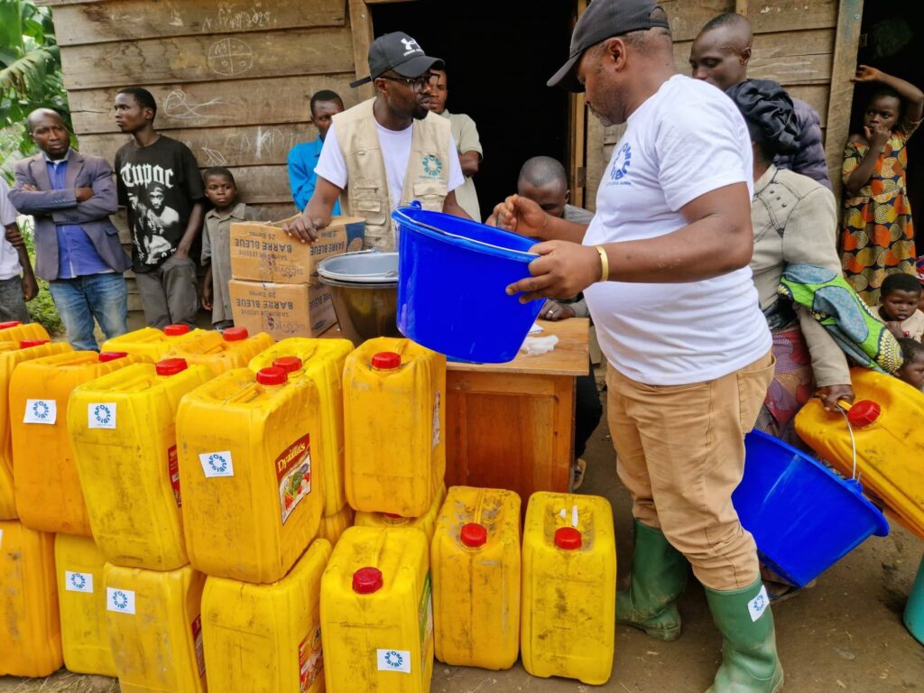L’organisation a procédé à la remise d’articles ménagers essentiels (AME), notamment des mbegeti (seaux), bidons pour la conservation d’eau potable et savon pour prévenir les risques sanitaires liés à la promiscuité et au manque d’hygiène.