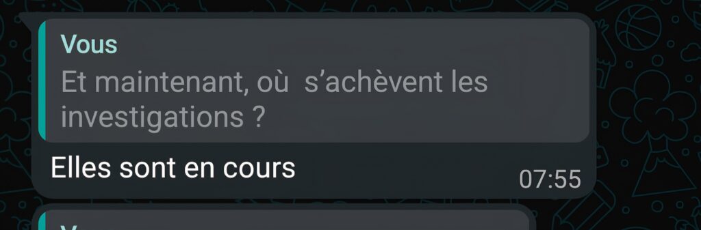 Contacté ce samedi 13 décembre pour la suite des enquêtes,  le Révérend Alain BANGA, qui offre cette information au public,  a rassuré que les investigations sont en cours.